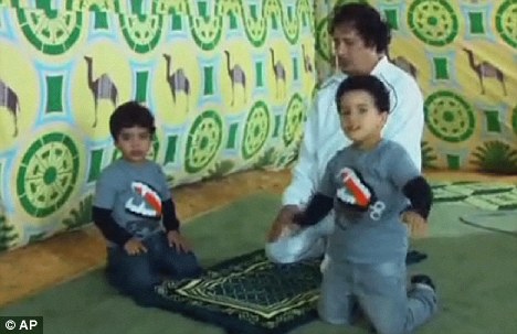 Et en exclusivité, des images de Kadhafi entouré de 2 enfants, apparemment ses petits-fils, le montrant en train de faire sa prière. Voilà pour le côté plus tendre de Mouammar Kadhafi…!