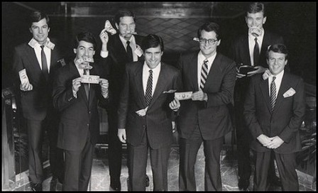 Sur la photo, on peut voir Mitt Romney poser, en compagnie de ses collègues pour la brochure de Bain Capital, avec des billets de banque. Le message ? On a de l’argent, on fait de l’argent et on aime l’argent !