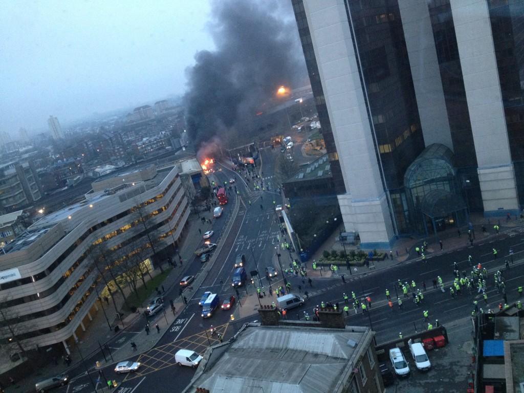 Alors que les pompiers londoniens se trouvent toujours sur les lieux, la zone a été évacuée et les rues environnante fermées à la circulation. Même chose pour la station de métro de Vauxhall.