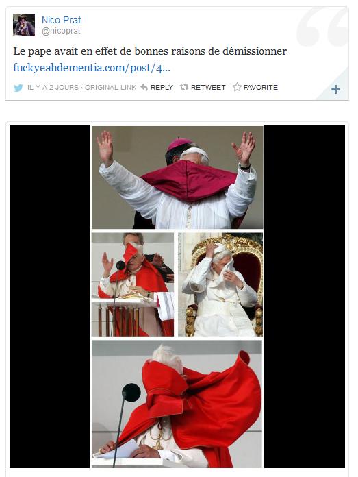 Où diable se trouve donc la vérité ? Dans la bouche de Benoît XVI ou dans celle de l’historien Lenoir ? Et si la vraie raison de la renonciation du pape se cachait parmi les hypothèses fumeuses des twittos, qui depuis lundi, se déchaînent sur le réseau qui gazouille.