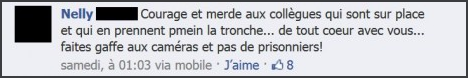 « J’ai pris du plaisirs hier soir. Sur 300 mecs contre 30 policiers, ça a même pas les couilles de venir au corps à corps. ».