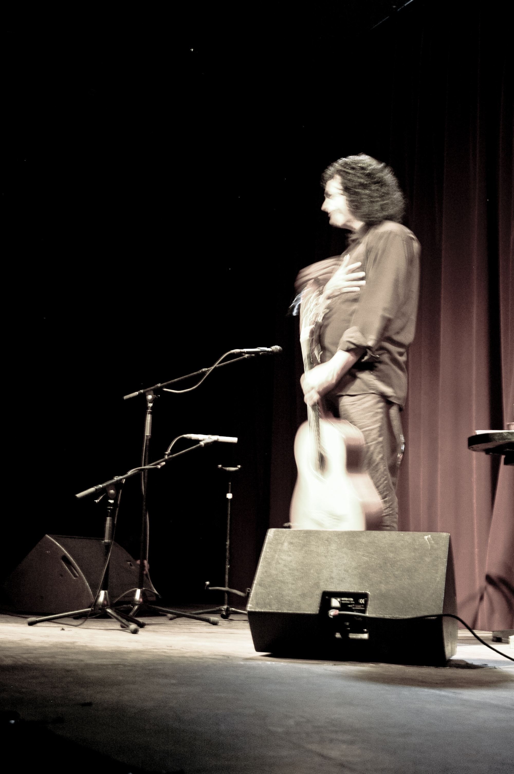 Paco a réussi à remuer mes racines andalouses, et nous a transmis son énergie en prenant appui sur les mélodies des grands classiques du répertoire flamenco, comme de compositions plus personnelles. Il se définit lui-même comme le dépositaire des cultures nomades, des Roms (écouter le titre Pobre Mariana) aux Améridiens (Chief Red Cloud). Pour la chanson Carcel, il transpose des récits de prisonniers qu’il a recueillis dans des centres de détention. Entre les nomades, pionniers de la liberté, et les détenus, privés de leur liberté de mouvement, il s’érige comme un apôtre en perpétuel mouvement. Son chant s’est tu hier soir, mais sa voix résonne encore à mes oreilles comme un dernier chant de cygne, un chant d’espoir.