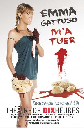 Emma Gattuso est tout simplement surprenante ! Cinglant, dérangeant, incisif et drôle… ce one woman show est teinté d’humour noir ! Dans son spectacle, tous le monde passe un sale quart d’heure : les pauvres, les enfants, les clochards, les femmes, les hommes, la publicité… même Nicole Kidman ! Emma manie le verbe à la perfection et fera rire le plus morne des spectateurs !